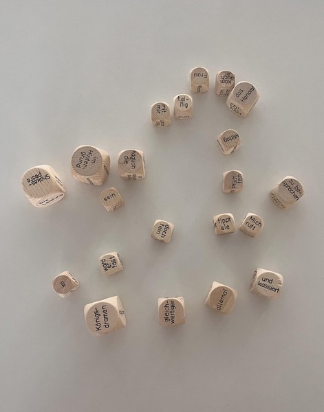 21 Holzwürfel beschriftet / Kantenlänge 30-50mm